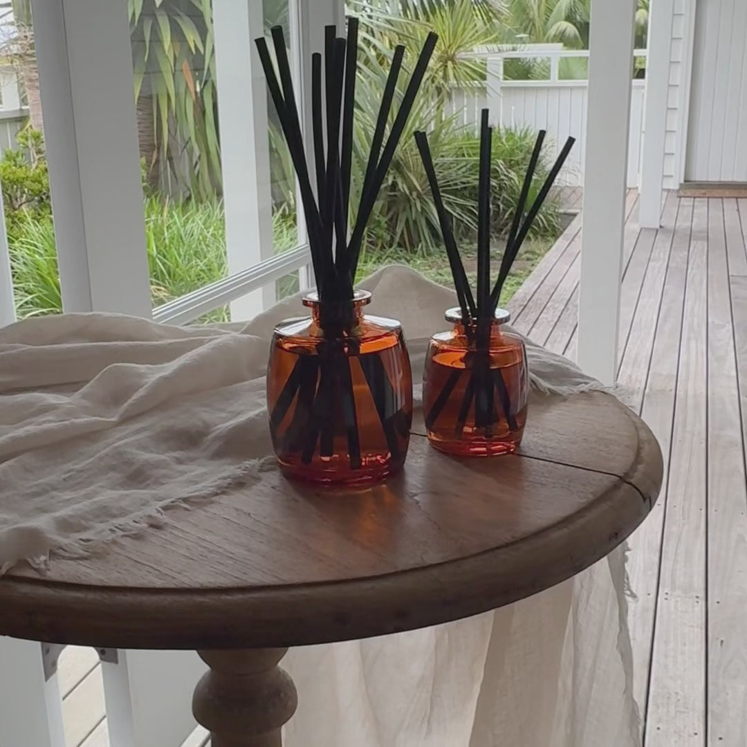 Capturing a refreshing blend of zesty Lemongrass & uplifting Neroli, together with invigorating Lime, Lemon & Star Anise essential oils this long-lasting, naturally scented fragrance diffuser set will stimulate the senses & enhance your sense of wellbeing. Proudly Australian made, this premium fragrance blend will effortlessly & safely radiate from the natural fibre reeds transforming your space into your very own scented sanctuary. Diffuses up to 6 months depending on air conditions. Non-flammable.